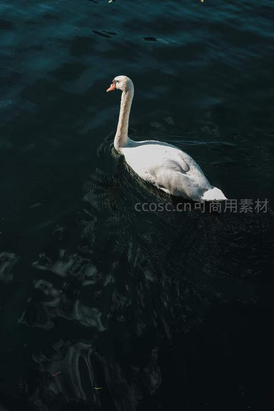 优雅天鹅独自游弋深色水面