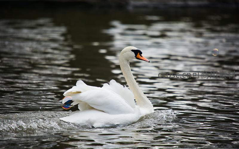 天鹅振翅溅起水花瞬间