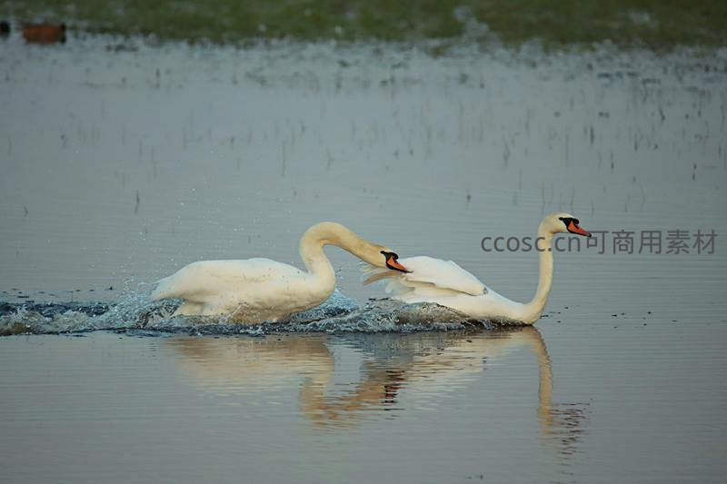 双天鹅戏水溅起水花