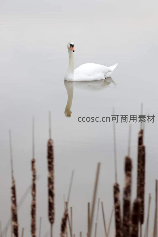 芦苇丛中,天鹅静立如画