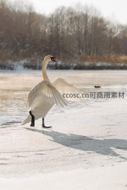 雪地天鹅展翅欲飞姿态优美