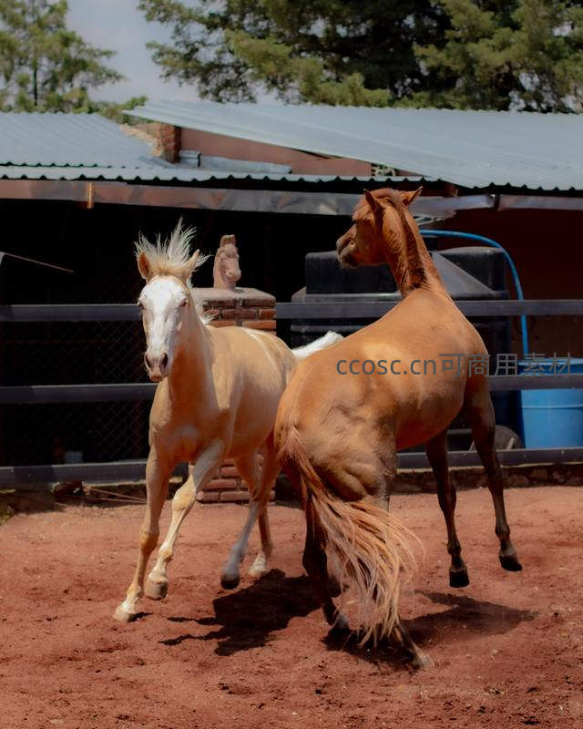 红土场上嬉戏的双马