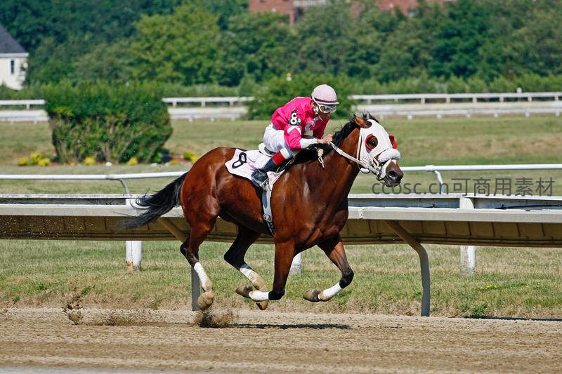 赛马场上骑师驾驭飞驰骏马