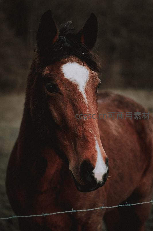 带白斑额头的马匹特写