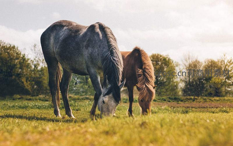 双马并肩于田野共享青草