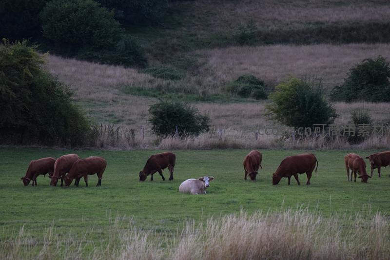 暮色牧场牛群静享时光