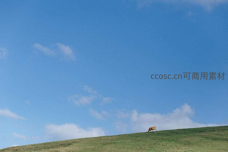 蓝天下的孤独牛影,草原尽头的宁静