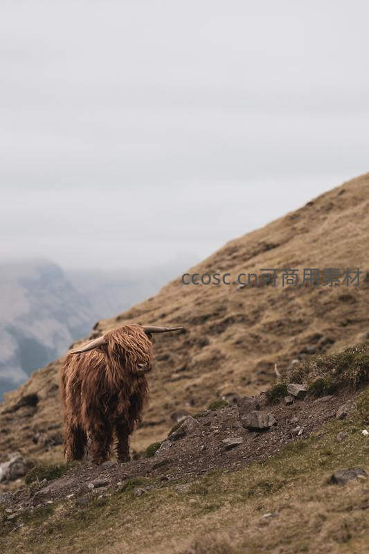 山巅上的高地牛孤独伫立