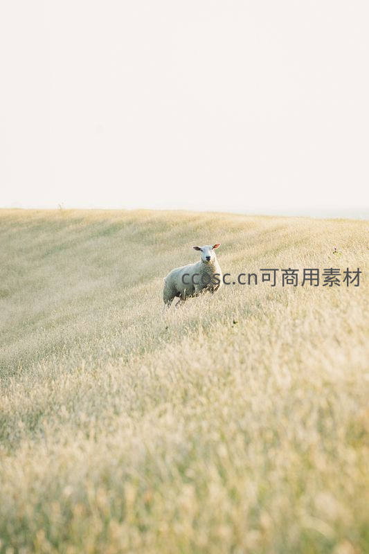 金色麦浪中孤独伫立的白羊