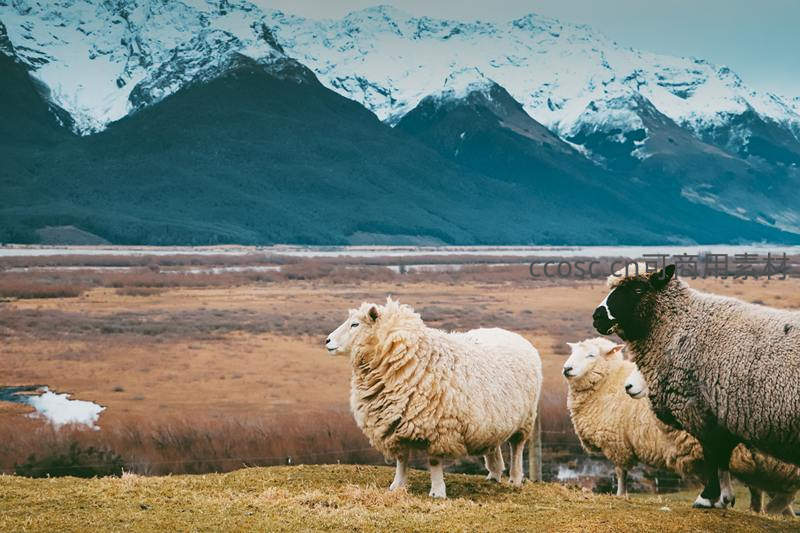 雪山前羊群驻足回望,高原牧场诗意画卷