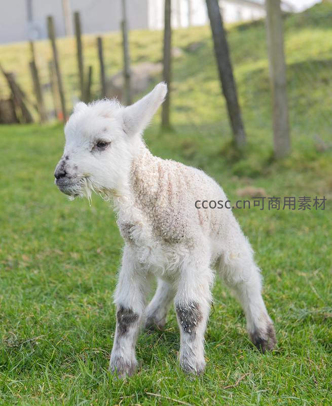 新生小羊初踏草地,绒毛湿漉