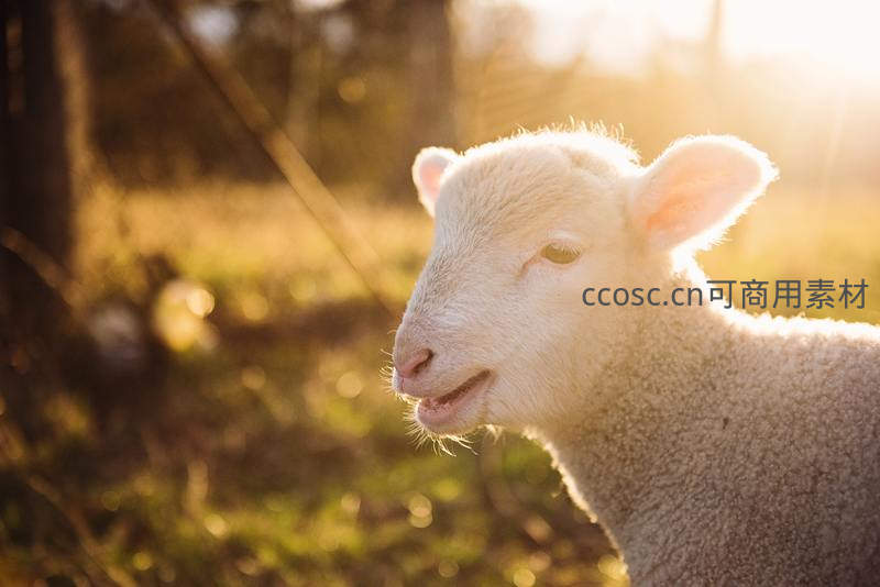 金色阳光洒在小羊身上,它侧脸微笑,毛发泛着柔和光晕,背景虚化成梦幻光斑,传递出温暖与安宁。