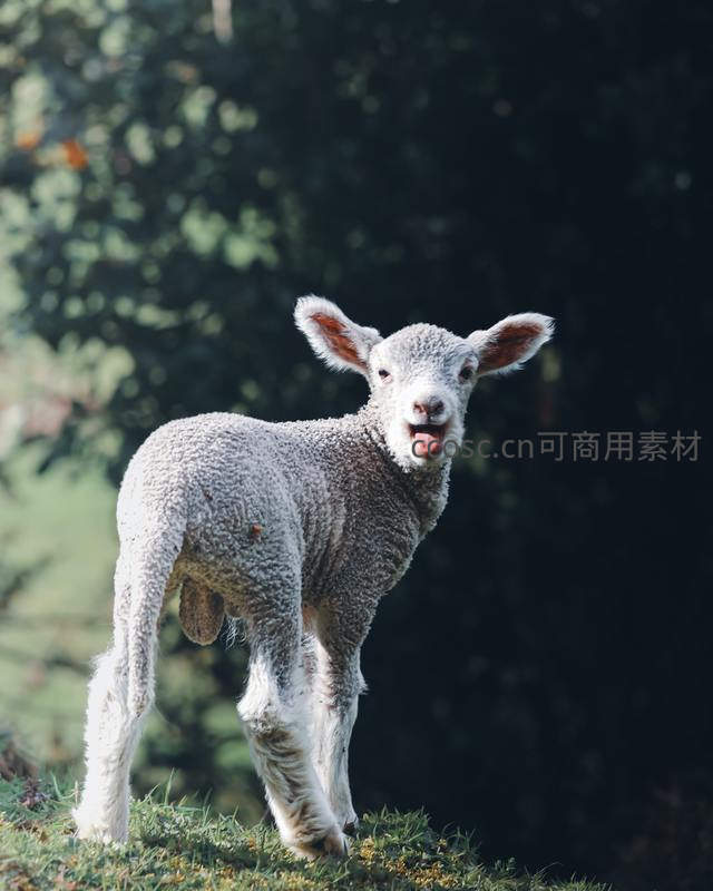 萌趣小羊吐舌望向镜头,毛茸茸的可爱模样