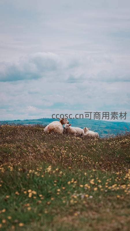 草原上的羊群在花海中休憩
