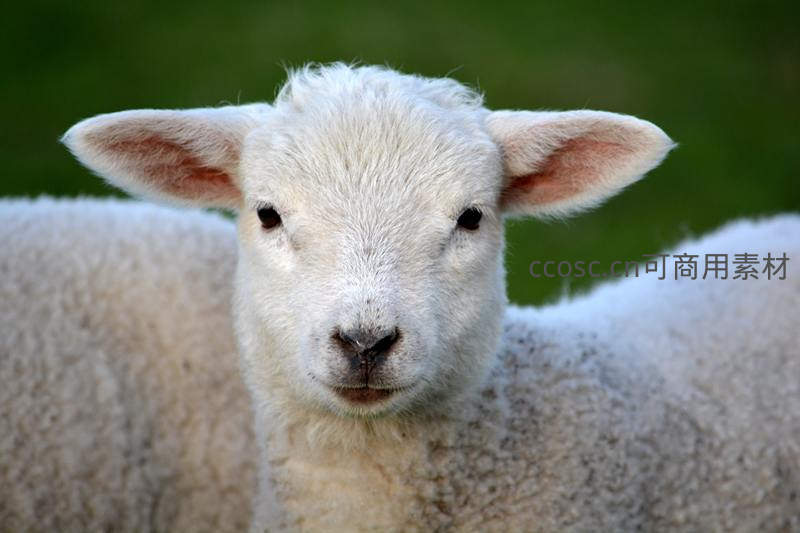 一张新生羔羊脸部的微距特写,它有着蓬松洁白的绒毛和一双清澈纯真的大眼睛,正好奇地凝视着镜头,显得无比可爱与无辜。