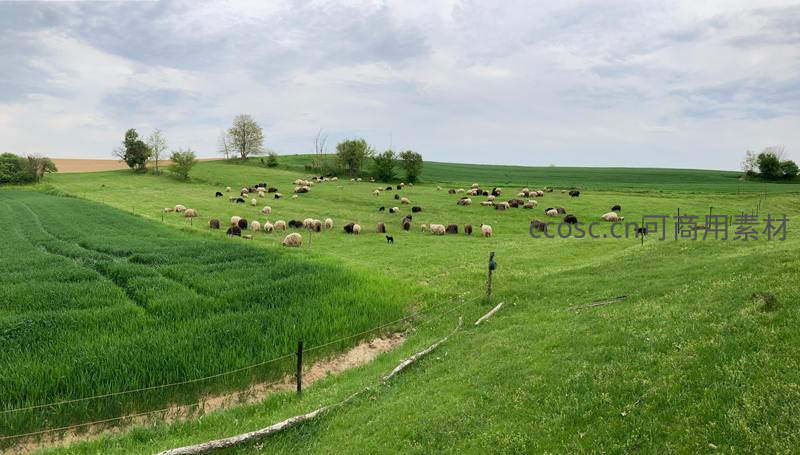 丘陵牧场羊群散落如星