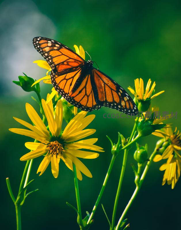 帝王蝶展翅于向日葵之上