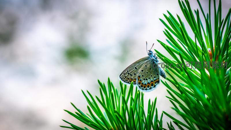 松针尖上的小蓝蝶,清新自然的森林瞬间