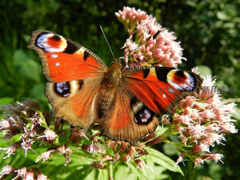 孔雀蝶展翅粉花丛中