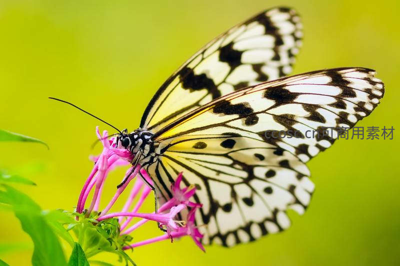 白黑斑蝶停驻粉花吸蜜瞬间