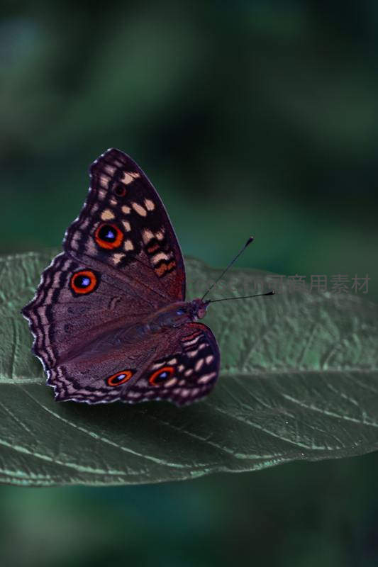 紫蝶静卧叶脉间,眼斑如珠映幽光