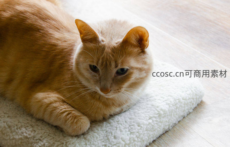 橘猫慵懒卧在柔软垫子上