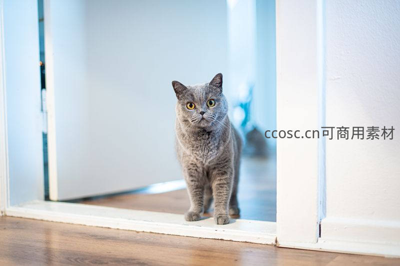 蓝猫站在门框中央凝望