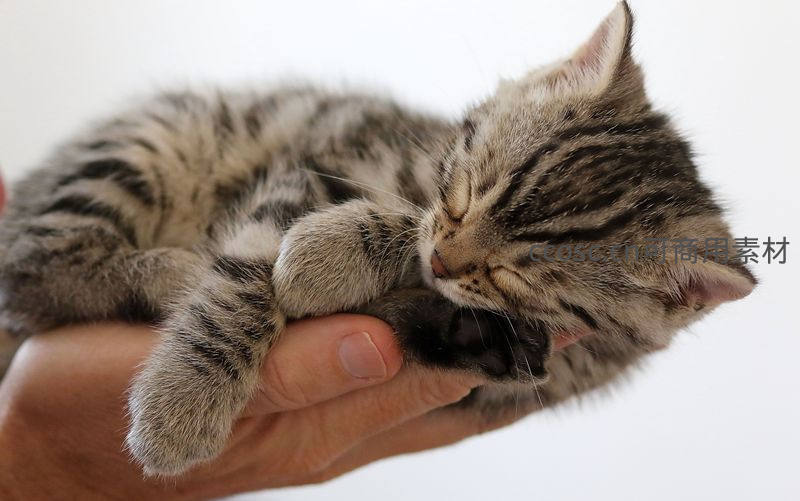 手心安睡的虎斑小猫,毛茸茸的可爱模样