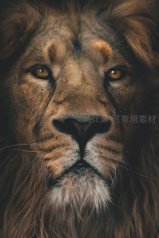 镜头聚焦于雄狮锐利而深邃的双眼,浓密的鬃毛环绕着坚毅的面庞,无声地宣示着草原之王不可侵犯的威严与沉静。