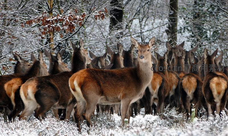 雪林鹿群,冬日里的温暖集结