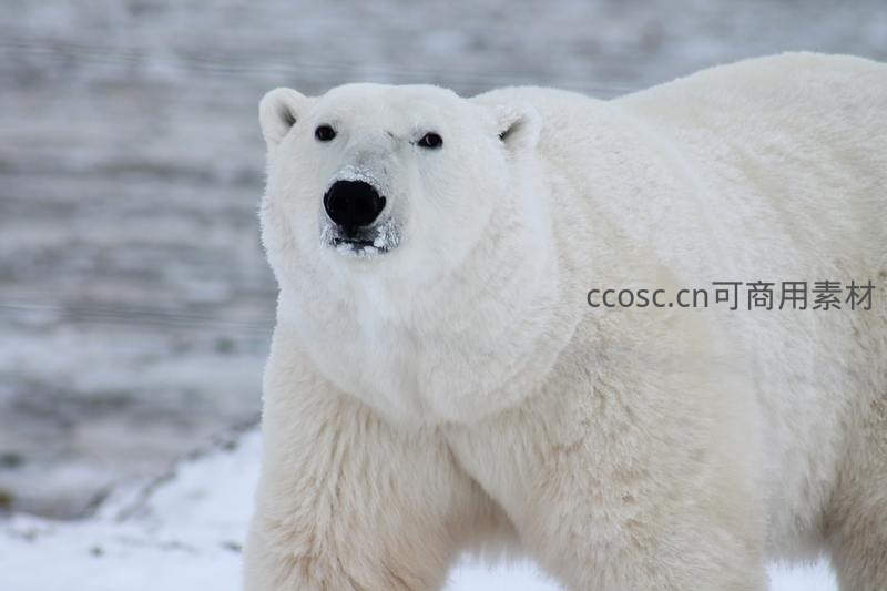 雪地中的北极熊凝视远方