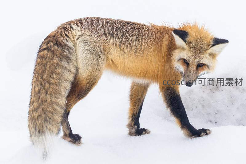 红狐踏雪寻踪,绒毛沾满霜花