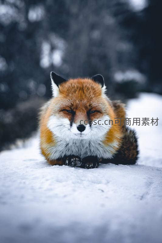 雪地酣睡的红狐