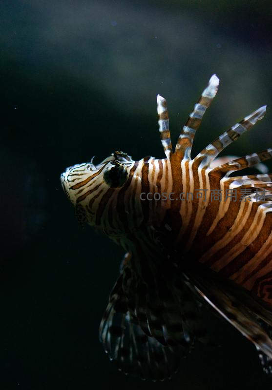 条纹狮子鱼在暗处展示毒刺
