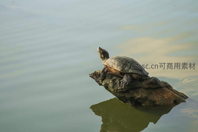 静谧湖面乌龟晒背,享受午后阳光