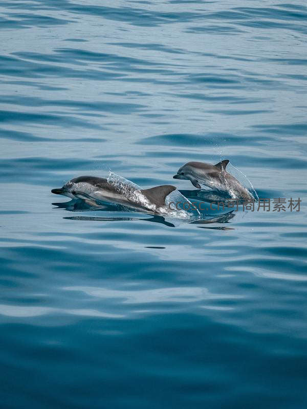 双豚共舞碧海间溅起水花