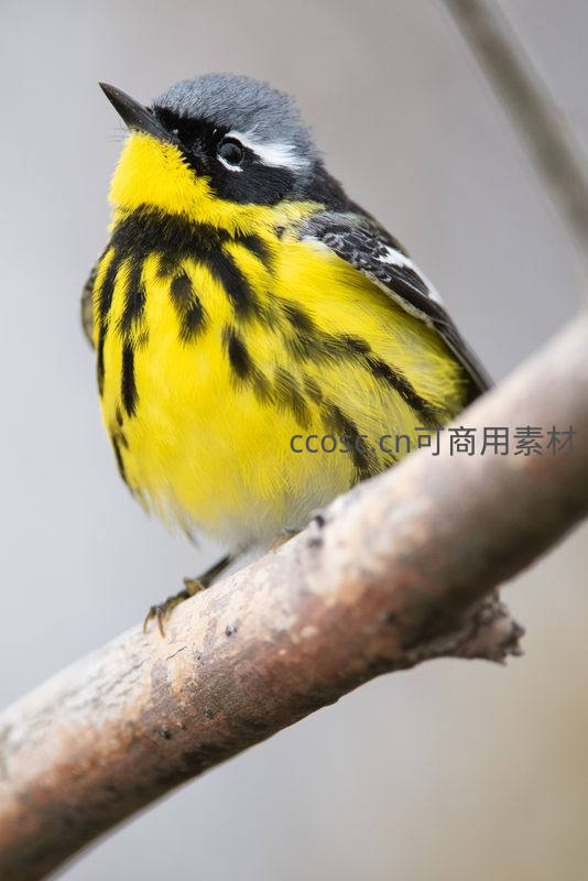 黄黑相间小鸟栖息树枝特写