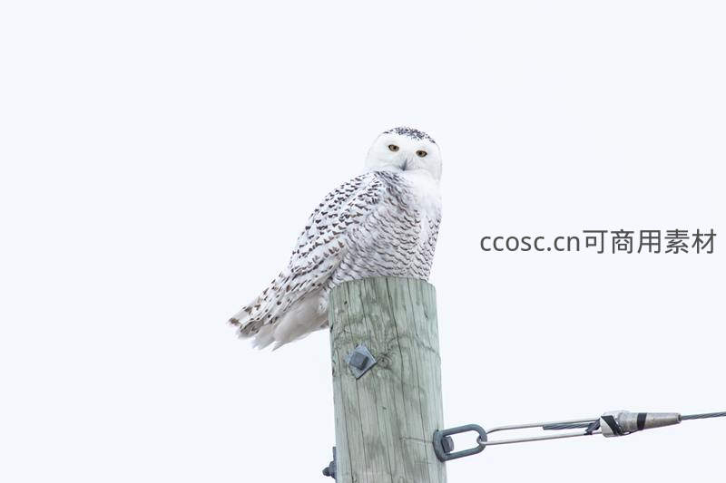 雪鸮栖息电线杆顶