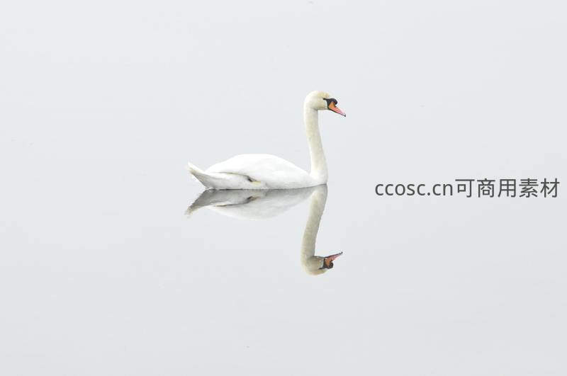 一只洁白的天鹅优雅漂浮在平静如镜的水面上,其完美倒影与之相映成趣,营造出空灵静谧的诗意氛围。