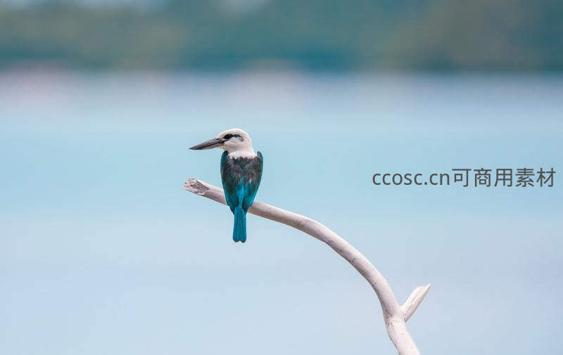 蓝翡翠静立枯枝远眺碧水