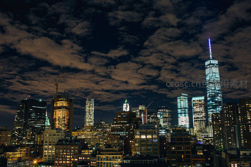 纽约曼哈顿夜空云层密布