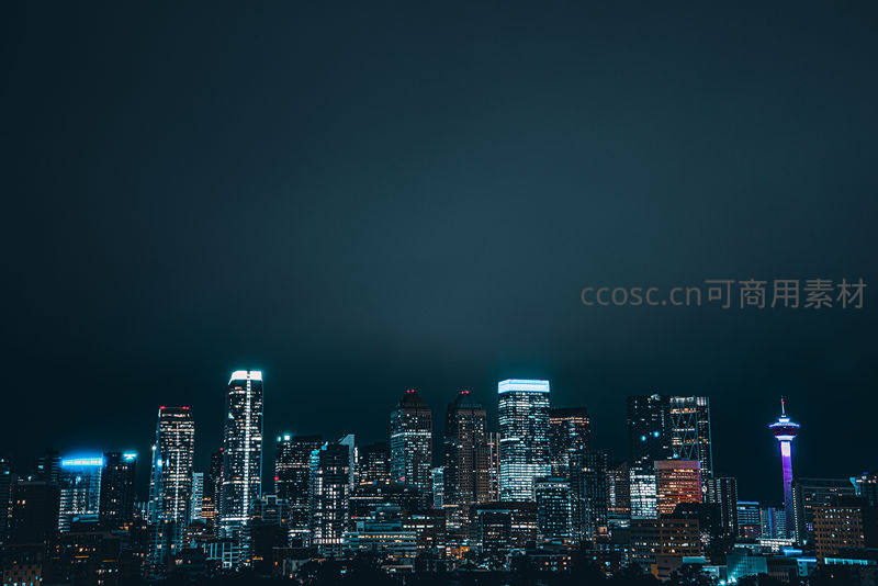 深蓝夜空下,摩天楼群灯火璀璨如星河