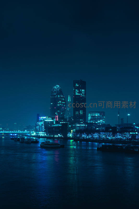 河畔蓝调都市夜色