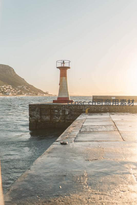 码头灯塔映夕阳余晖