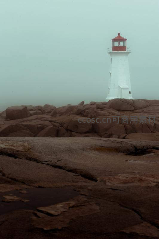 雾中孤灯塔,静立礁石之上