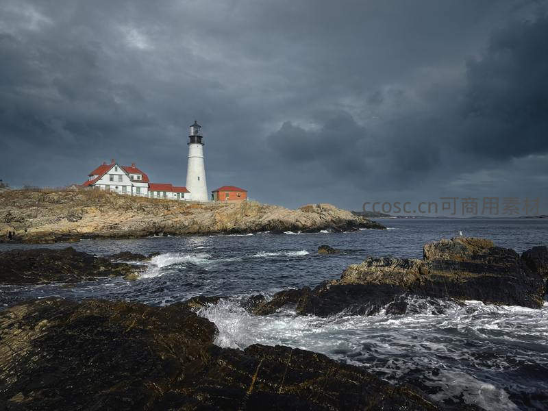 风暴前夕的海岸灯塔,守护着惊涛骇浪
