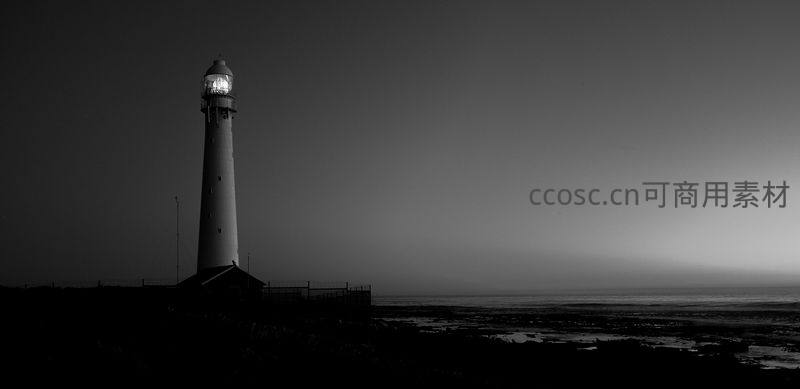黑白世界中孤灯塔,月光下的剪影