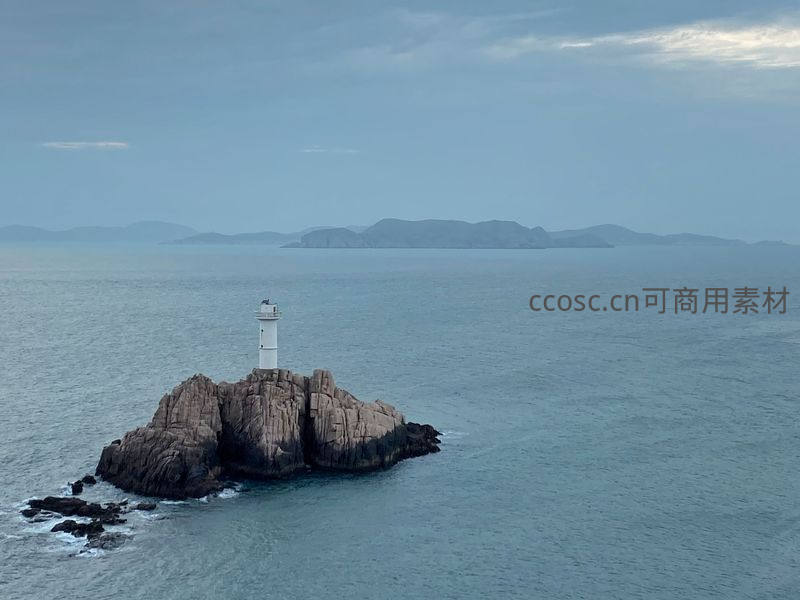 礁石孤岛白塔远眺群山