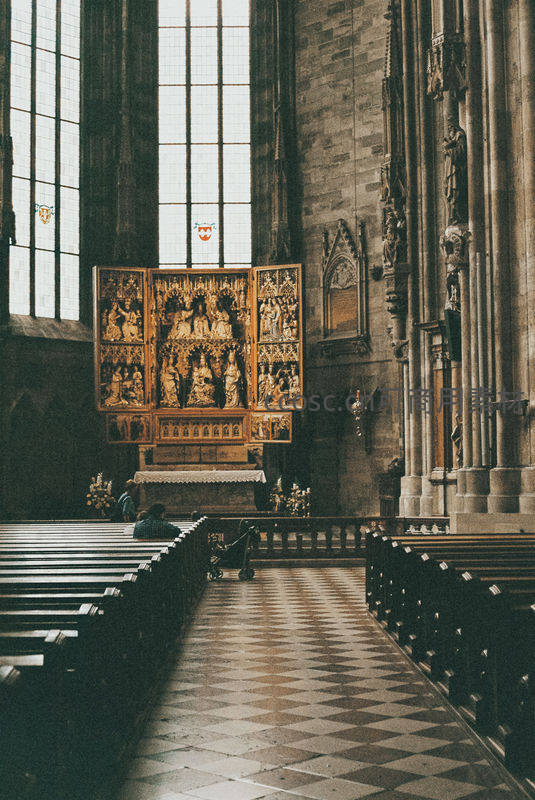 宏伟教堂内景光影斑驳