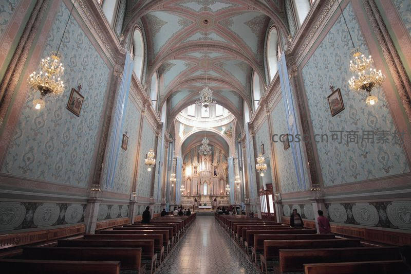 华丽教堂内部穹顶与长廊全景